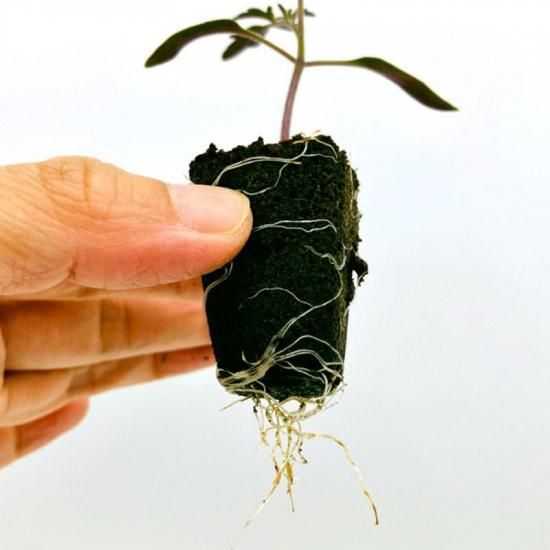 育苗ポットは天然ピートモスとココヤシ素材を使用。根に土が付いていないので洗い流す手間もなく、そのままポットごと植え付けできます。さらにポットごと収穫して、根付きのまま出荷できるので、手間いらずで鮮度も長持ちします。プラスチックごみも出さず、人にも環境にも優しい苗です。(土耕栽培にも使用できます。)